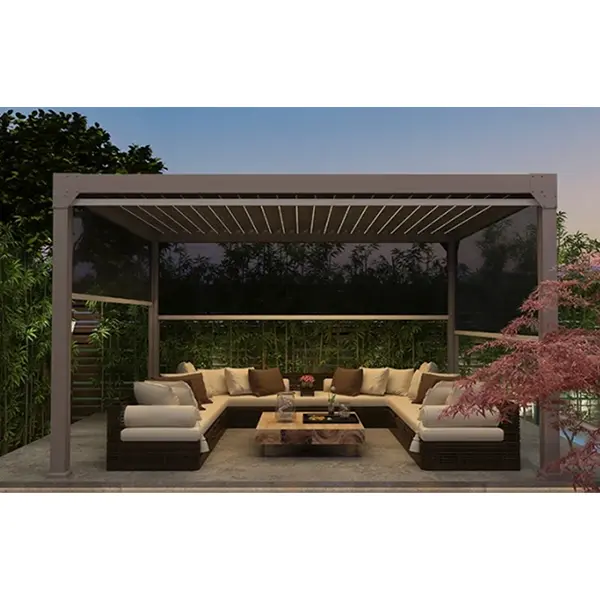 Подржава прилагођавање дужине, ширине и висине у пуној величини, од малих приватних тераса величине 3×3 м до великих комерцијалних површина за слободно време од 8×12 м. Опције боја укључују мат црну, звездасто сиву и друге чврсте боје или боје дрвета као што су сандаловина и црвенкасто-браон, које одговарају различитим стиловима као што су модерни минималистички и нови кинески. Модуларни монтажни дизајн омогућава монтажу на лицу места, коју ће професионални тим завршити за 1-2 дана, без оштећења постојеће дворишне декорације. Чак и већ уређени простори могу се лако надоградити.